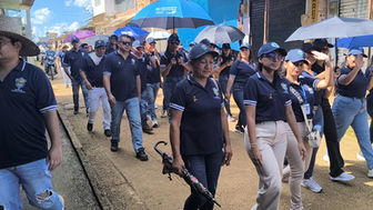 Profesores y estudiantes de la institución Institución Educativa Francisco de Paula Santander, en la vereda de Buenos Aires.